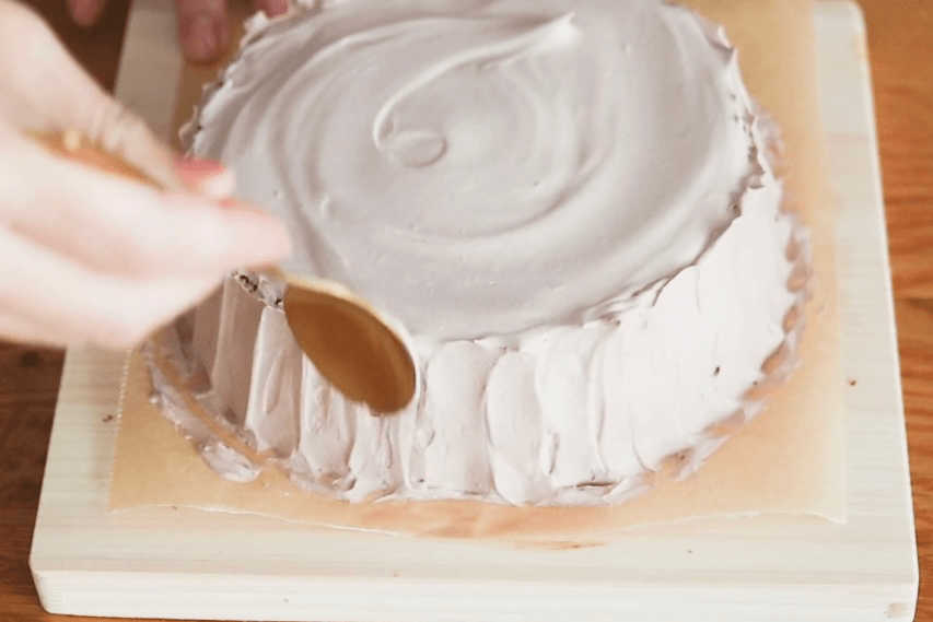⑤側面は小さめのスプーンで下から上に動かし模様をつける。