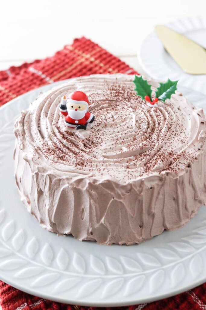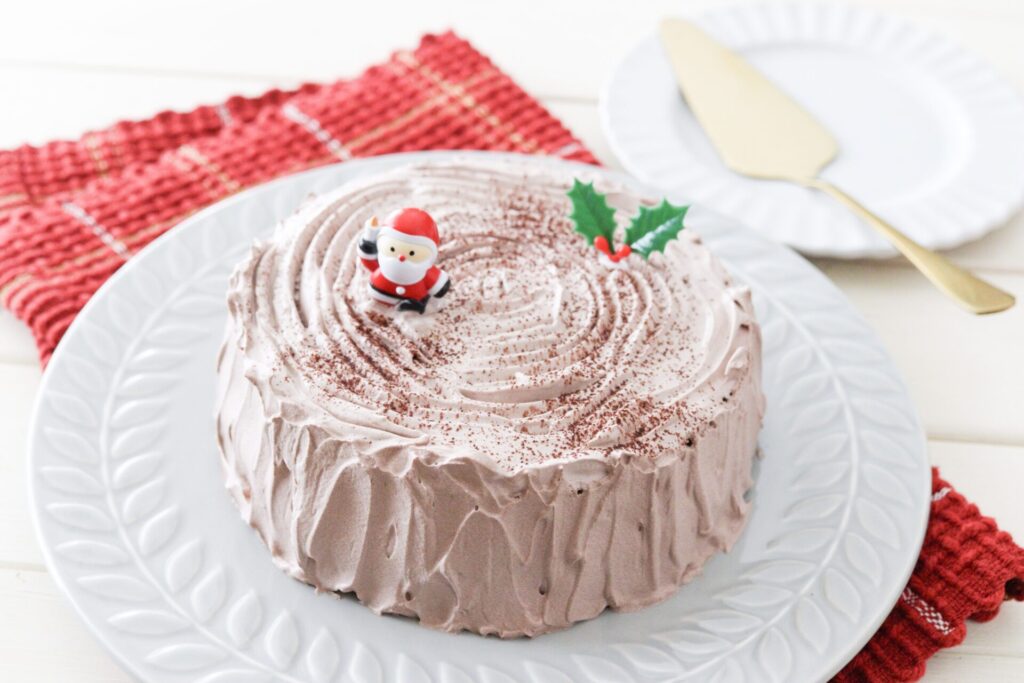 ブッシュドノエルはロールケーキで作ることが多いですが、ホールケーキの方が失敗しにくいです。