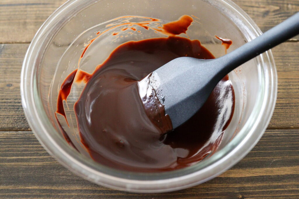 チョコレートが完全に溶けてつやがでるまで混ぜる。