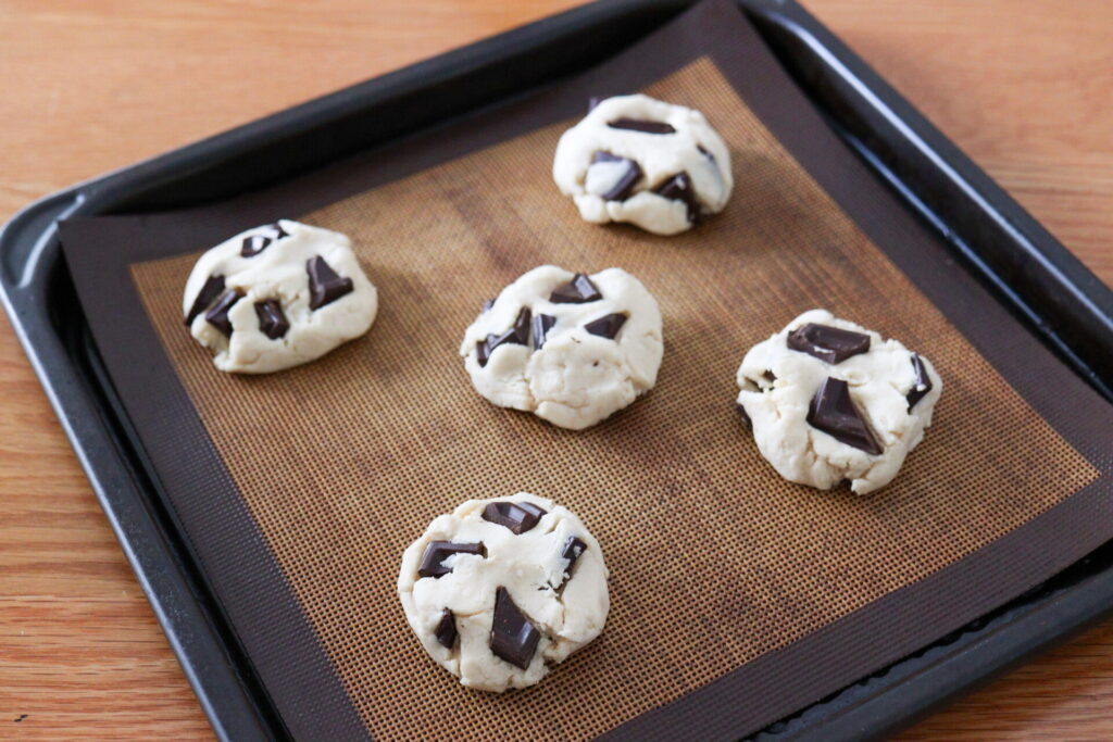 ③②の生地を5等分にし、厚さ1.5cmほどの高さに平く丸めて天板に並べる。