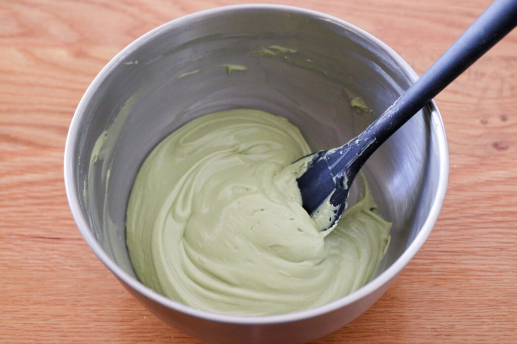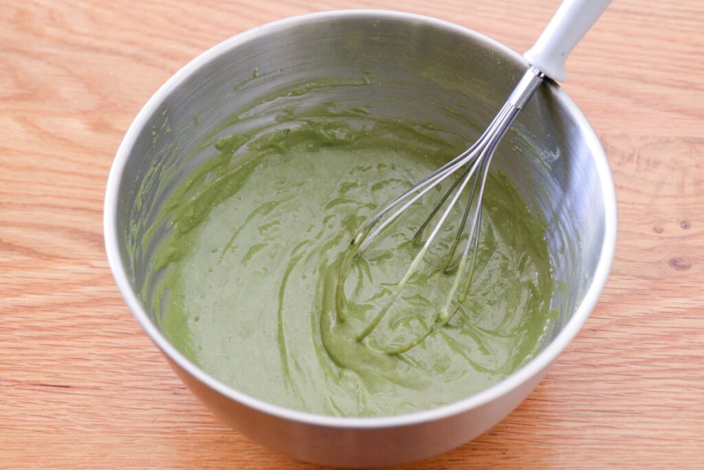 抹茶、砂糖、植物油を加えてよく混ぜる。
